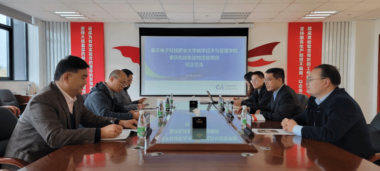 2025年11月19日,重庆电子科技职业大学数字经济与管理学院副院长汪启航带队赴重庆机场集团物流管理部进行调研。座谈上,重庆机场集团物流管理部总经理、物流园区管委会(物流分公司)主任、总经理肖汉飞对我院一行的到访表示热烈欢迎。他详细介绍了重庆市对航空物流产业的近远期宏伟规划、强有力的资金与政策支持,并分享了作为一线企业家在推动产业升级过程中所面临的现实挑战。汪启航向与会企业领导详细介绍了我院的专业设置、人才培养特色及多元化的校企合作模式。......