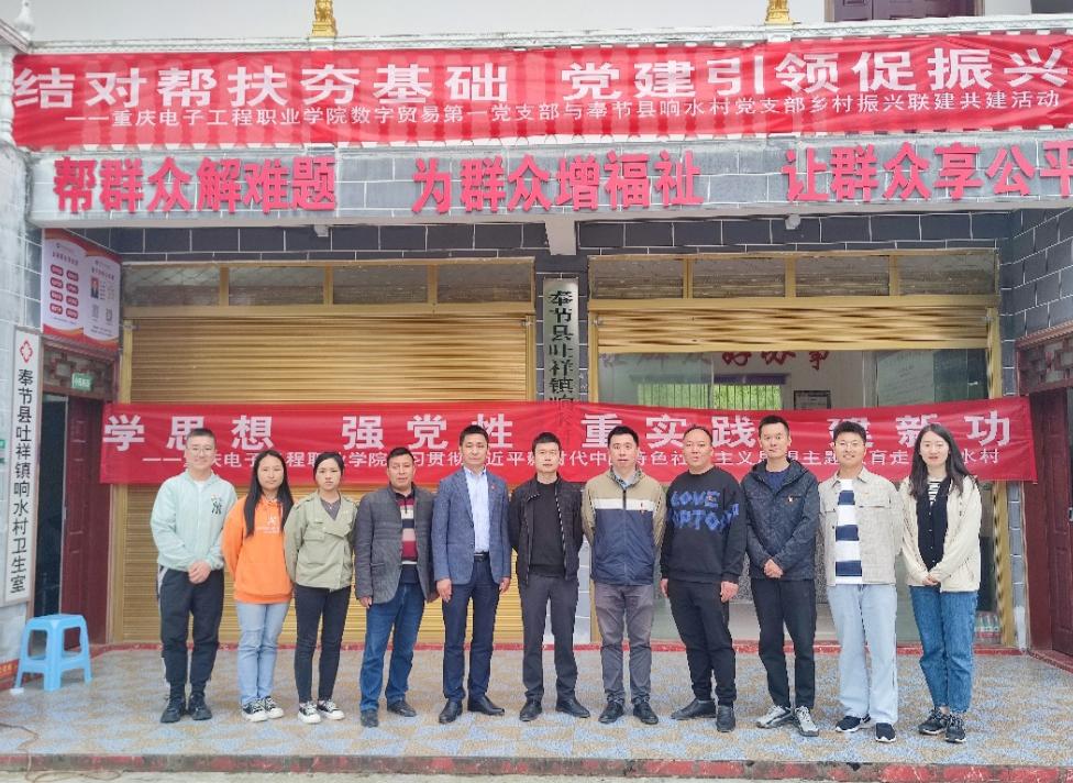 为全面贯彻落实党的二十大精神,积极响应学校党委和财经管理学院党总支关于深入开展学习贯彻习近平新时代中国特色社会主义思想主题教育的号召,5月8日至5月9日,重庆电子工程职业学院数字贸易第一党支部教师党员代表、学生代表奔赴奉节县吐祥镇,与响水村党支部一起开展了学习贯彻习近平新时代中国特色社会主义思想主题教育暨乡村振兴支部联建共建活动。本次活动结合主题教育,按照学校打造新时代“红岩先锋”变革型组织新要求,落实“......