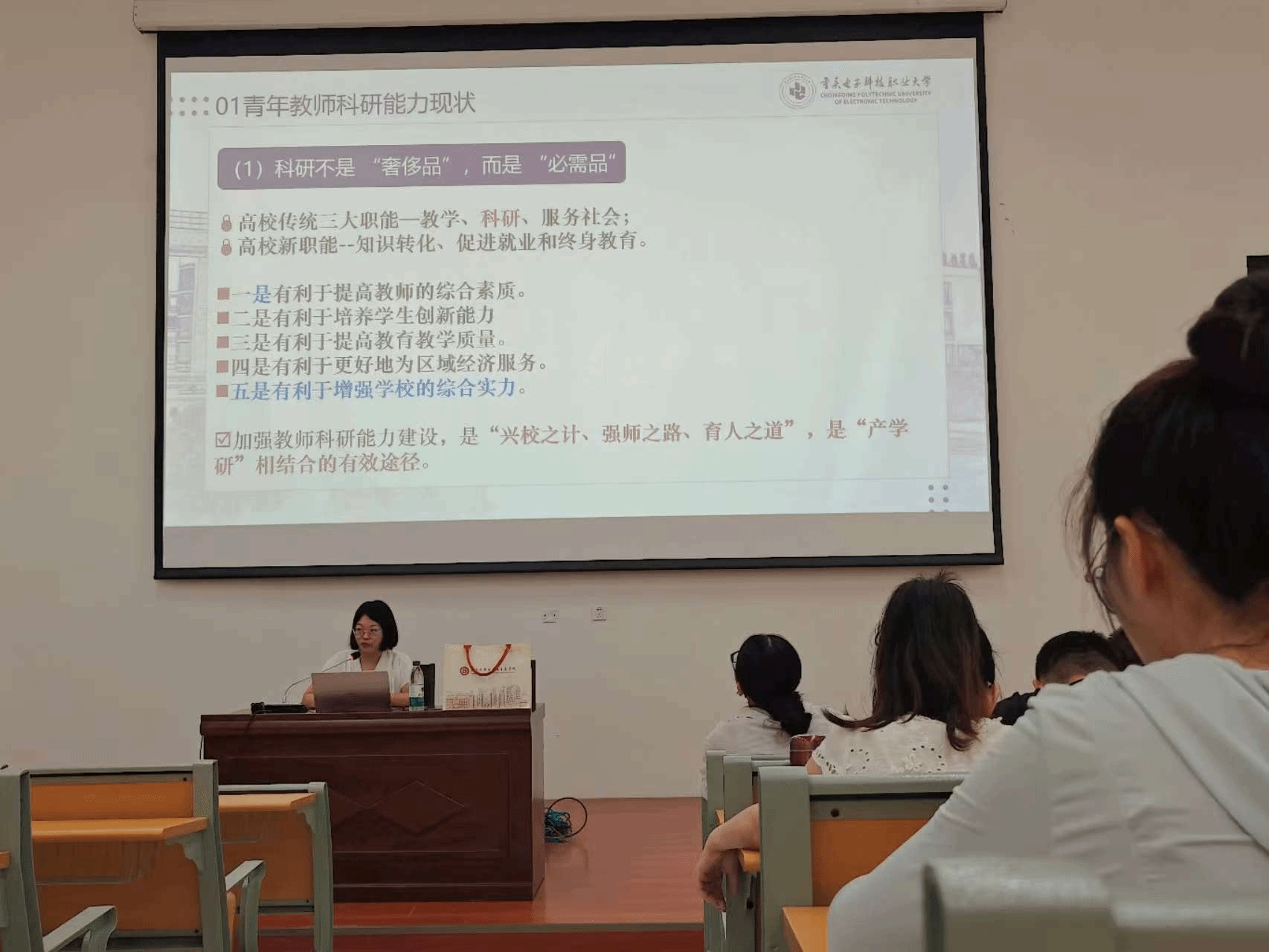 为强化职业教育科研实力,助力教师专业成长,2025年7月2日,重庆电子科技职业大学数字经济与管理学院(大数据与最优化研究所)张莉博士、副教授应邀到铜梁职教中心,开展暑期科研专题讲座。培训聚焦课题申报与论文写作等核心内容,为教师科研能力提升“破题指路”,搭建起高校科研智慧与职教实践深度协同的桥梁。讲座中,张莉以《修行于行,求索于实》为主题,紧密结合职业教育特色,融入自身科研经验,从科研选题、文献综述、期刊选择到创新凝练四个角度进行了讲解。......