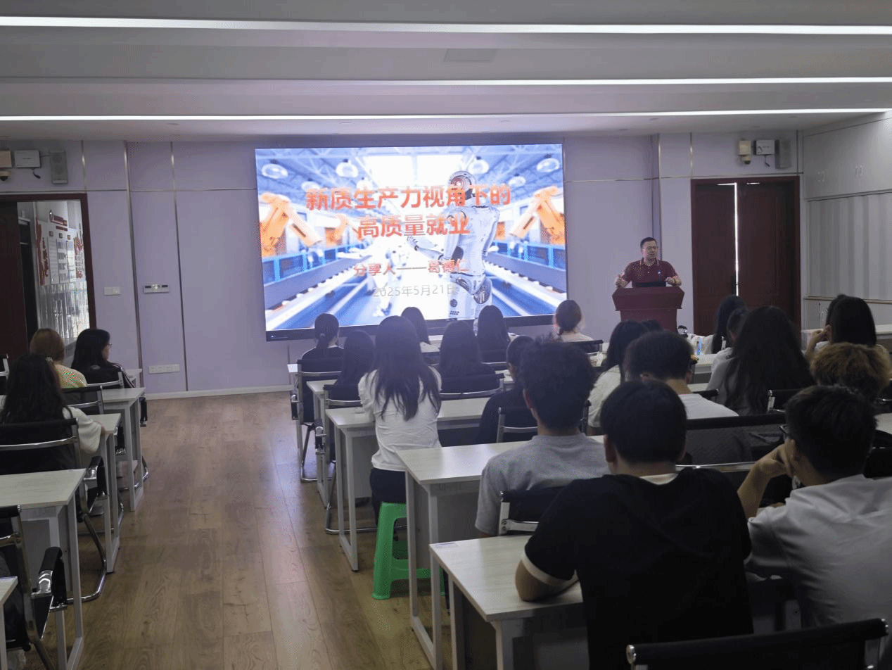 2025 年 5 月 21 日下午,一场以 “新质生产力视角下的高质量就业” 为主题的精彩讲座在财经管理学院开讲。本次讲座特邀赛力斯减震器公司总经理助理、人力资源总监葛德仁先生担任主讲嘉宾,为电子商务专业的同学们带来了一场别开生面的就业指导课,助力学生们明晰职业发展方向,提升就业竞争力。讲座伊始,主讲人以当前经济形势为切入点,深入剖析了新质生产力在各行业的渗透与发展趋势,并着重强调了其对就业市场带来的深刻变革。他指出,......