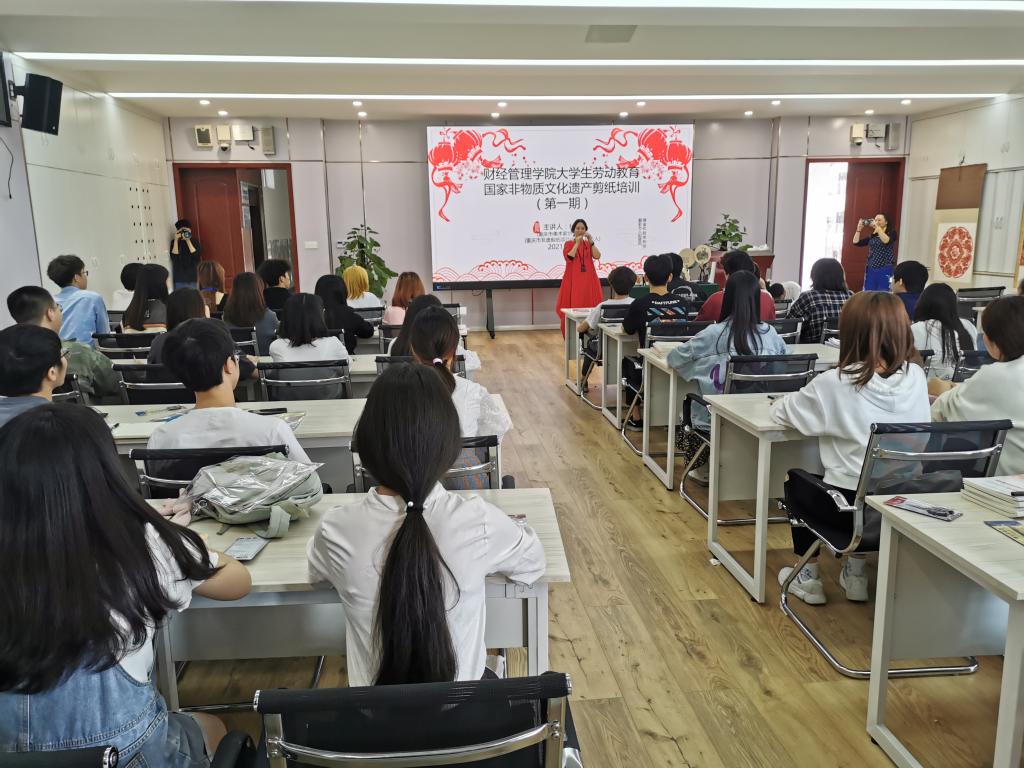 为加强学院大学生劳动教育,弘扬传承国家非物质文化遗产,丰富校园文化生活。2021年4月27日,财经管理学院在10-412会议室组织举办了“大学生劳动教育——国家非物质文化遗产剪纸培训(第一期)”。经报学校审批,此次培训邀请了重庆市非遗剪纸项目代表性传承人杨艺老师作专题指导。
