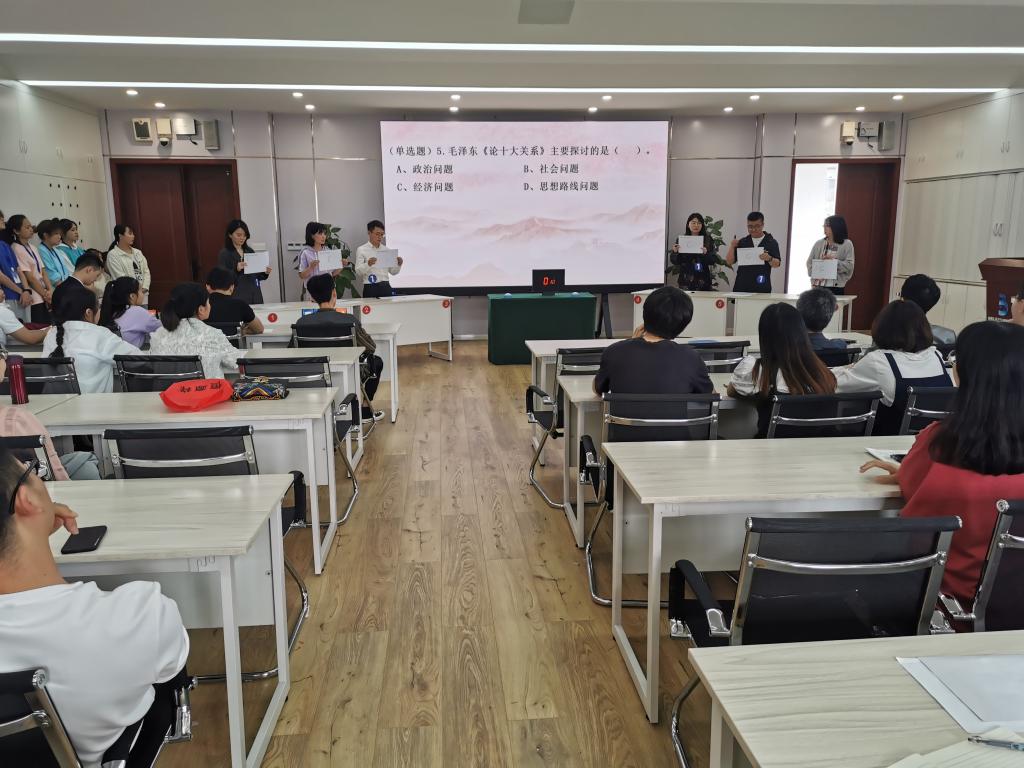 党史知识竞赛内容丰富,分为扬帆起航(必答题)、眼疾手快(抢答题)、加时赛三个环节;有单选、填空、多选等多种题型,以现场记分、现场公布结果的形式进行。比赛现场气氛紧张,异常激烈,扣人心弦。比赛中,选手们精神饱满,认真作答,均以接近满分的成绩通过前两轮必答题和抢答题,在第三轮加时赛中,各小组也不甘示弱,分秒必争。经过激烈的角逐,财经科技第一党支部以优异的成绩荣获了一等奖,智能物流党支部、专业基础部党支部分别荣获二等奖和三等奖。