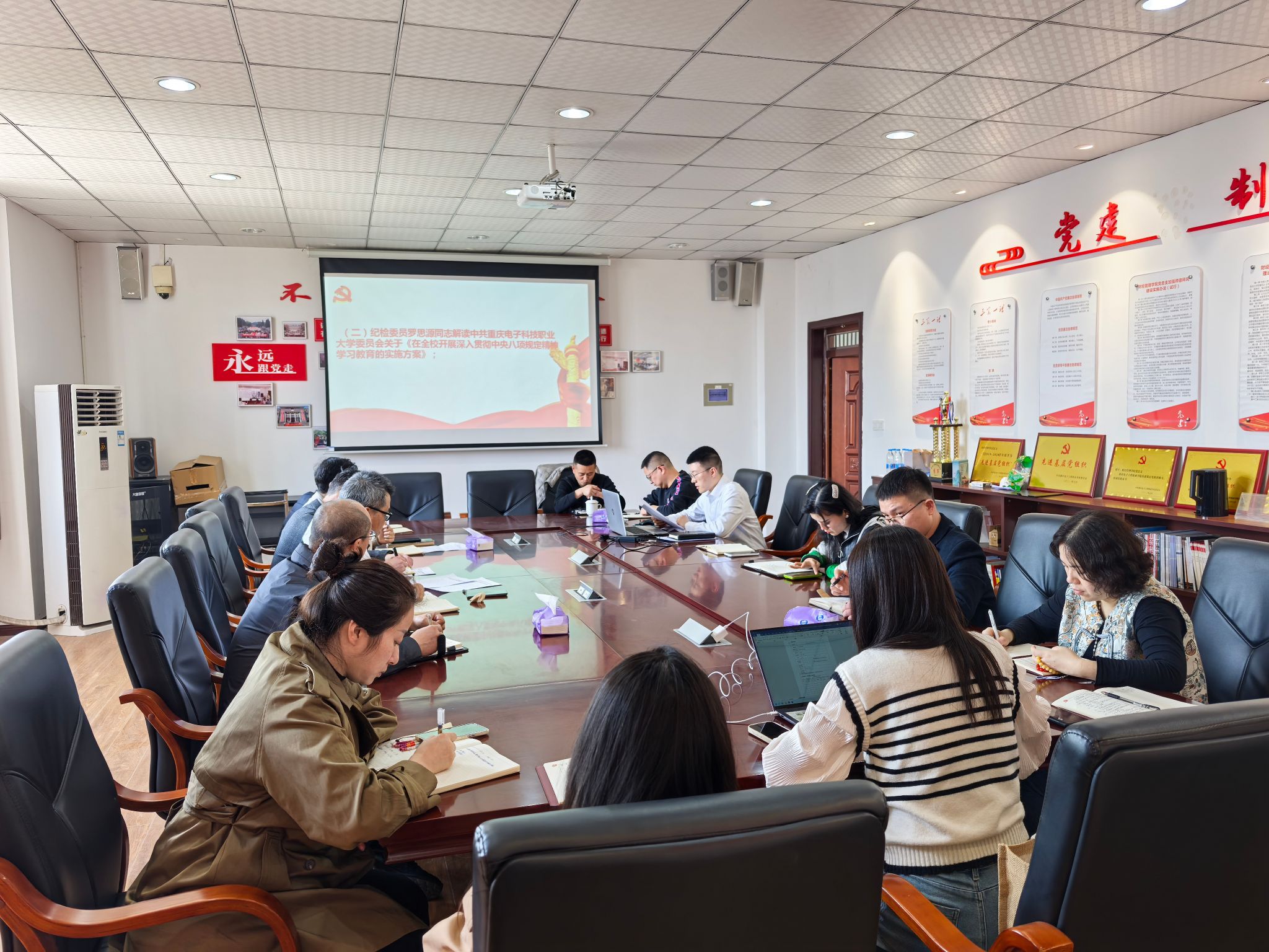 会上,党总支副书记、院长黄志平同志传达学习了上级单位发布的《关于在全党开展深入贯彻中央八项规定精神学习教育的通知》文件精神并宣读了财经管理学院党总支《关于成立深入贯彻中央八项规定精神学习教育工作领导小组及工作机构的通知》。党总支纪检委员罗思源同志解读了中共重庆电子科技职业大学委员会关于《在全校开展深入贯彻中央八项规定精神学习教育的实施方案》。党总支书记蒋斌同志就开展深入贯彻中央八项规定精神学习教育作动员讲话,并提出相关要求。