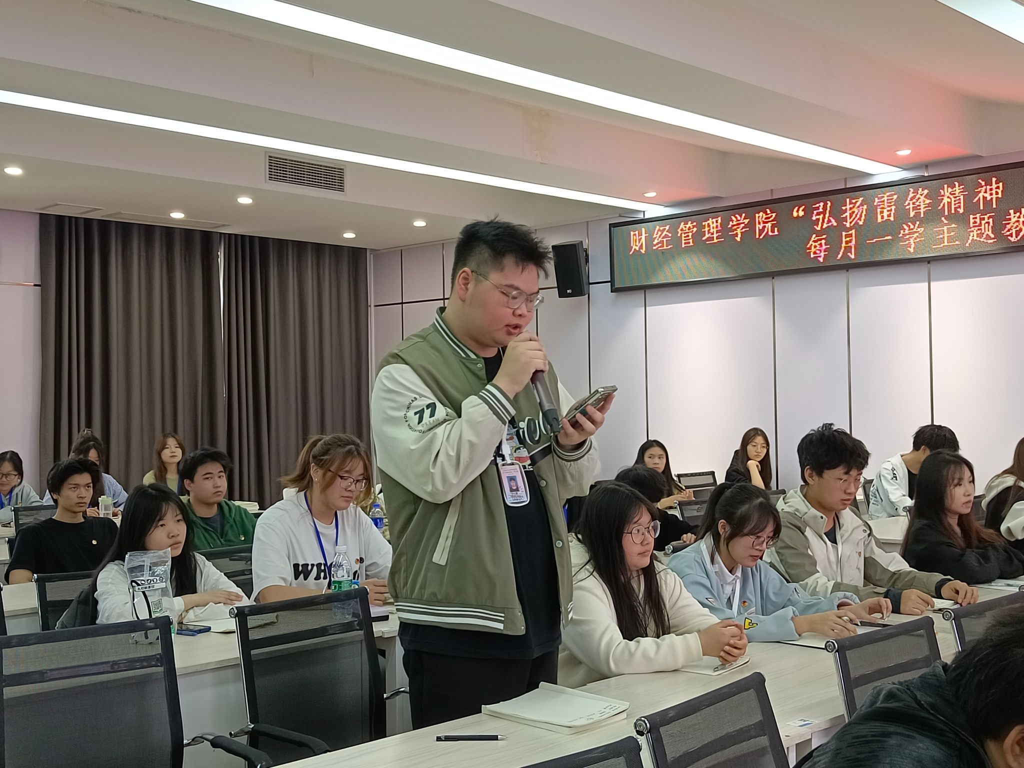 为进一步深化同学们对雷锋精神的理解与认识,同时加强党史教育学习。3月27日中午12:30,财经管理学院在10-412会议室组织开展了“弘扬雷锋精神——让青春在奉献中绽放”每月一学活动。此次活动由财经管理学院团总支副书记高振东老师主持,各二级学院青年代表参加。