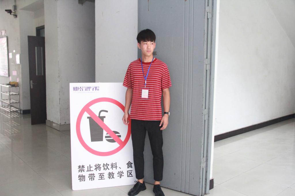 为积极响应创建文明校园活动,财经管理学院于新学期开学伊始,组织学生志愿者在每天早上八点十分、下午一点四十分在北校区九栋、十栋教学楼值班,对带食品和饮料进教学区域的同学进行宣传和劝导。