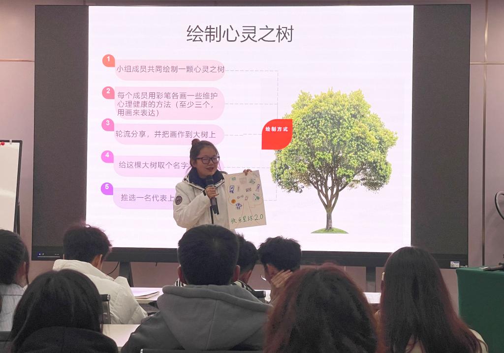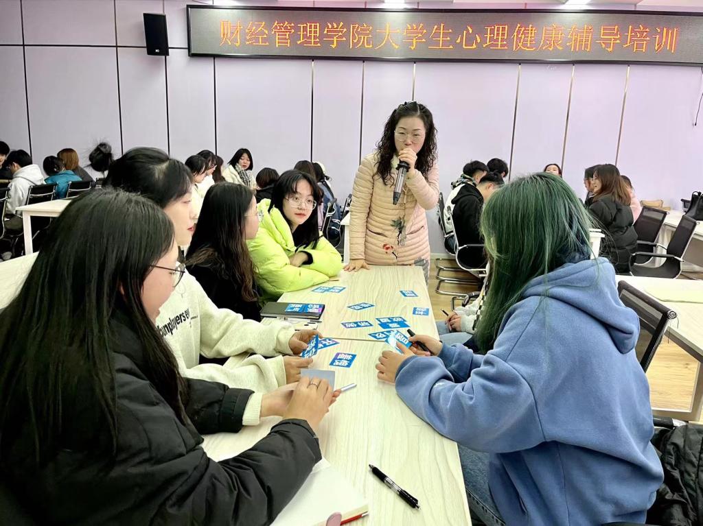 心理健康团体辅导,是通过知识传授、修心养德,开展大学生心理健康教育的有效途径和方式,有利于培养学生健全的人格、积极的心态和良好的个性心理品质。培训围绕心理健康标准、心理健康自评、维护心理健康的方法等内容开展,将知识点贯穿于典型案例分析和心理游戏互动中,进一步增强大学生对心理学的认知和运用,提升心理健康素质。参训学员通过系列培训,纷纷表示重塑了认识自我、悦纳自我、调节自我的理念,学到了一些实用有效的调节情绪的方法。