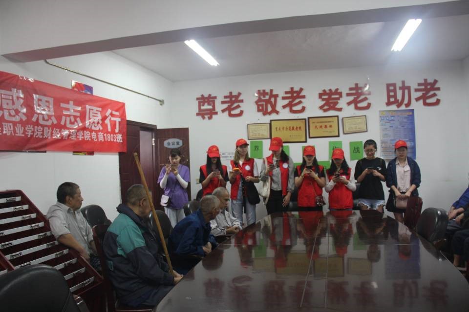 情满敬老院,感恩志愿行。为积极培育和践行社会主义核心价值观,弘扬中华民族尊老、敬老的传统美德,传递感恩、服务志愿精神,2019年6月16日,财经管理学院电子商务1803班的志愿者学生在张倩老师的带领下来到青木关老年休养院,为二十多位老人送去关怀和温暖。
