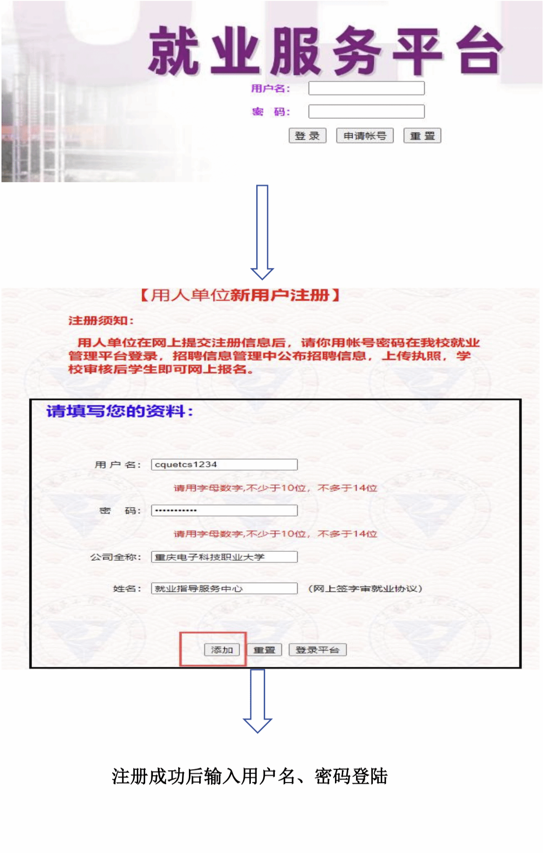 http://job.cqcet.edu.cn 进行账号申请