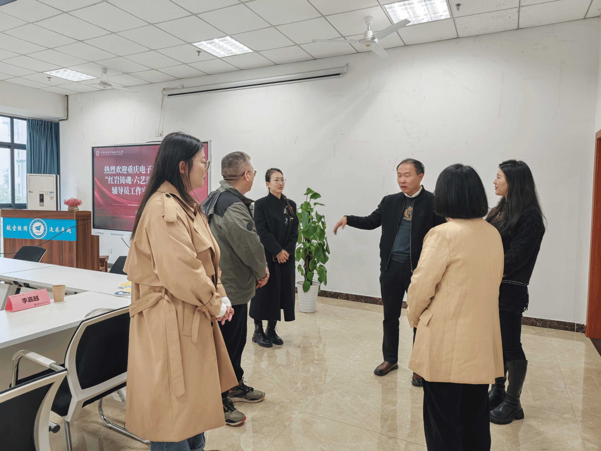 11月7日,工作室团队抵达成都航空职业技术大学,与该校“学思践悟”辅导员领航力工作室开展专题调研。成都航院学生工作部部长叶峰对工作室一行表示欢迎,并强调了辅导员在落实立德树人根本任务中的关键作用,期待双方在资源共享、经验互通中探索队伍建设创新模式。“红岩铸魂·六艺润心”工作室负责人对此回应,高度评价了成都航院在辅导员专业化培养方面的成果,并表示期待通过跨校联动,推动育人工作从“单点突破”向“系统集成”跃升,共同打造兼具航空特色与文化底蕴的育人品牌。