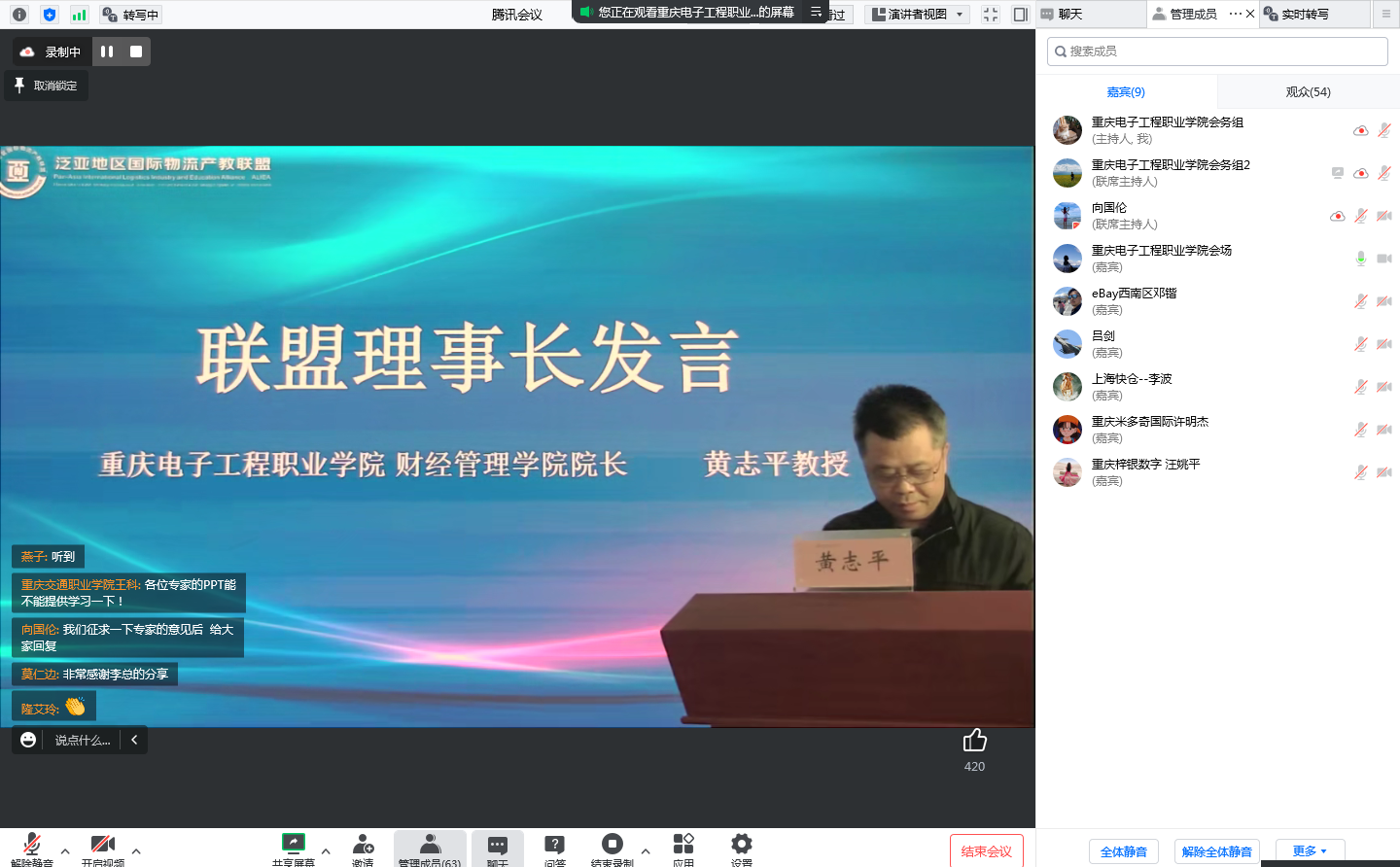 我校财经管理学院院长黄志平作为联盟理事长对此次论坛给予了高度评价,他表示,未来,泛亚地区国际物流产教联盟将始终坚持“共享、互补、共赢”的原则,以“产教融合、资源共享、优势互补、协同发展”为宗旨,继续整合泛亚地区各方资源,为服务国家职业教育发展战略、构建校企协同育人机制、培养和输送国际化高素质技术技能人才贡献力量。