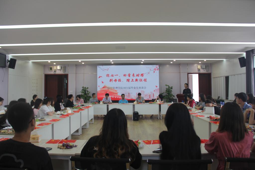 六月的校园,翠绿托红花,美好时光匆匆而难忘。2021年6月25日,财经管理学院在10-412会议室开展了“迎七一回首来时路,别母校踏上新征程”财经管理学院2021届毕业生座谈会。