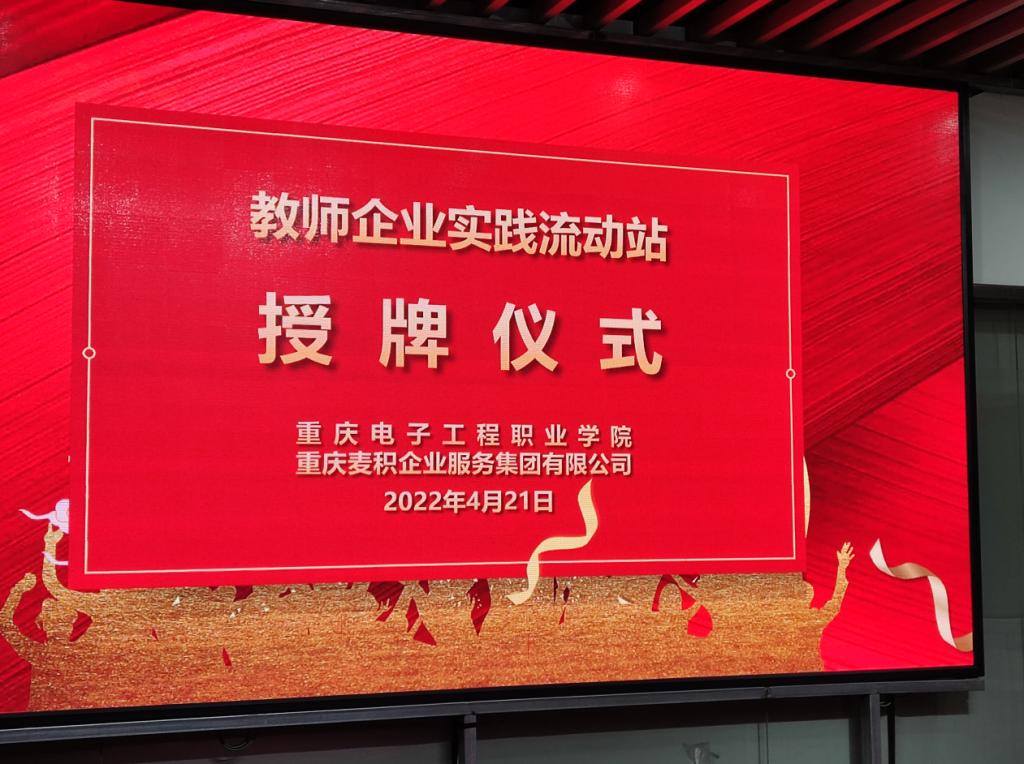 2022年4月21日,重庆电子工程职业学院“教师企业实践基地”授牌仪式在重庆麦积企业服务集团成功举行。麦积集团董事长李霞、财经管理学院党总支书记、副院长谢鑫等校企双方共12人参加“教师企业实践基地”授牌仪式。