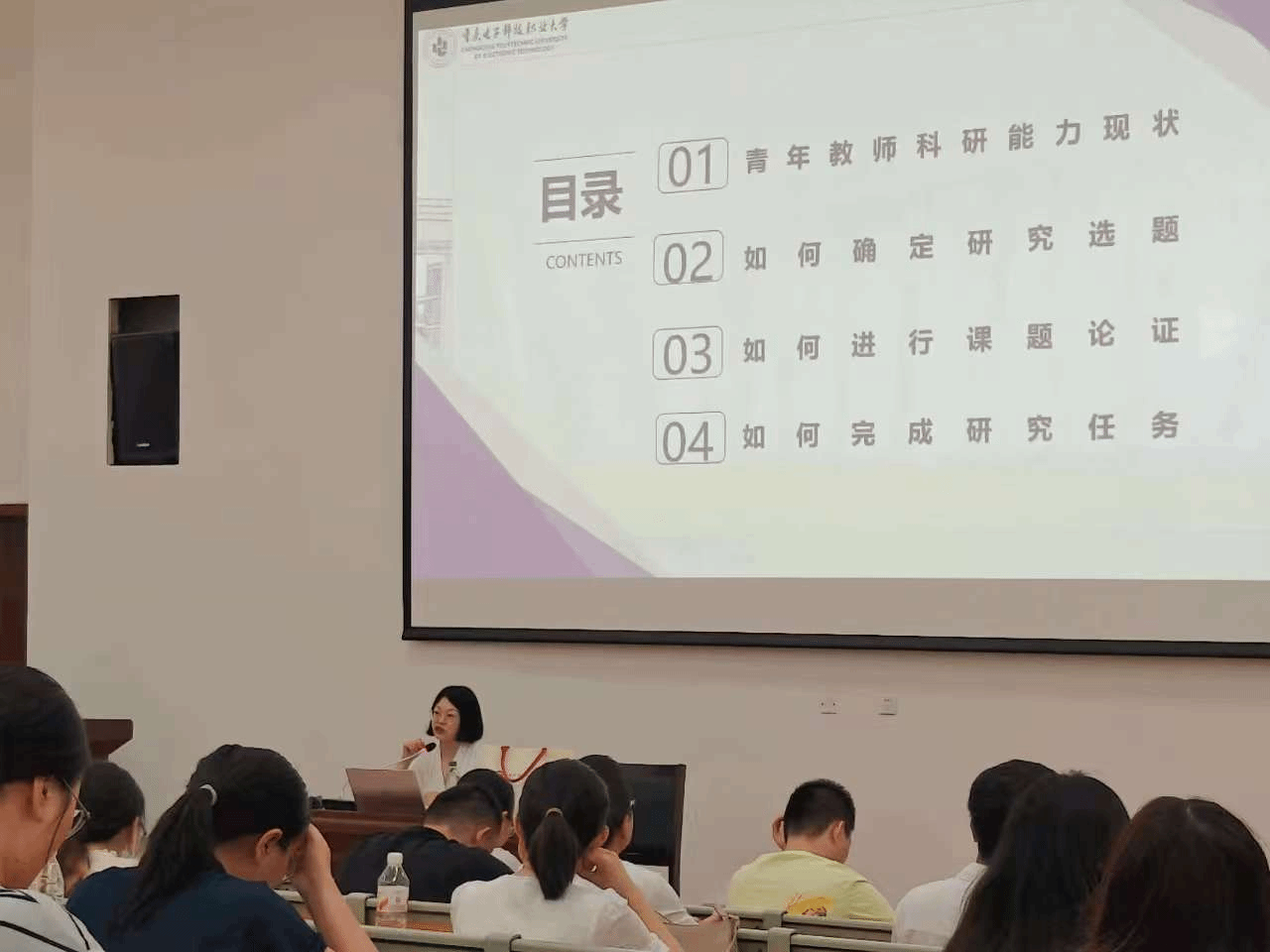 为强化职业教育科研实力,助力教师专业成长,2025年7月7日,重庆电子科技职业大学数字经济与管理学院副教授、重庆市文化育人辅导员工作室主持人陈宗霞应邀到南充文化旅游职业学院,开展题为《青年教师科研能力培养与提升》的暑期科研专题讲座。