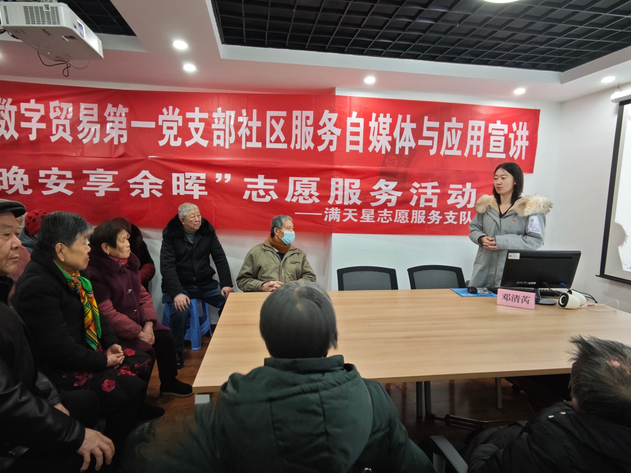 为帮助社区的老年朋友们更好地融入数字化时代,享受智能科技带来的便利,提高金融安全的意识,12月20日上午,重庆电子科技职业大学财经管理学院数字贸易第一党支部联合团总支满天星志愿服务支队开展“桑榆未晚 安享余晖”志愿服务活动,为学府社区的老年朋友们举办了一场智能手机应用的培训活动。