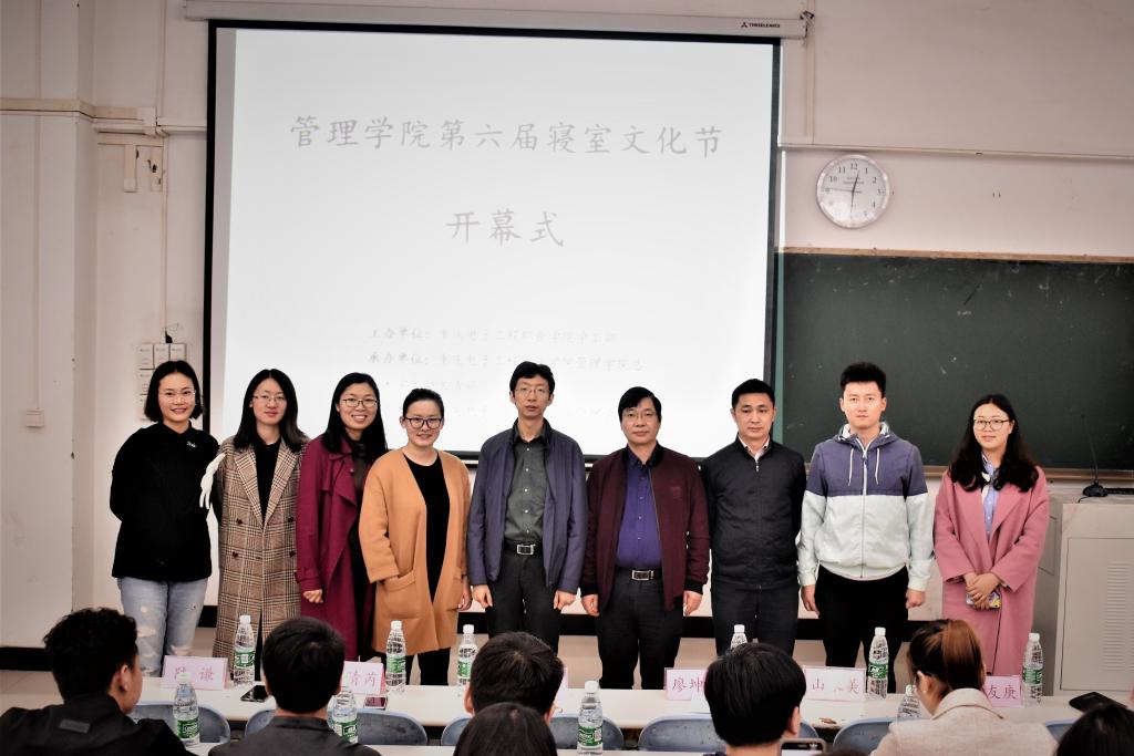 教室举办了第六届寝室文化节开幕仪式。管理学院党总支山永美书记、廖坤科副书记、学管科刘友庚科长,辅导员老师陆谦、陈艳丽、任文慧、赵苗苗、马丹,以及管理学院的全体寝室长和团总支学生会成员参加了本次开幕式。