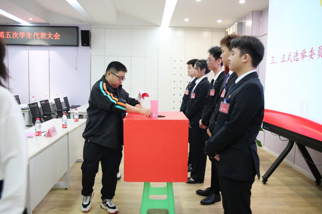 在第五届学生委员会、学生会主席团成员选举环节,投票次序井然,参会代表们结合各候选人的思想作风、工作态度、综合素质等多方面表现进行了无记名投票。经过监票、计票,最终产生了第五届学生会主席团成员。